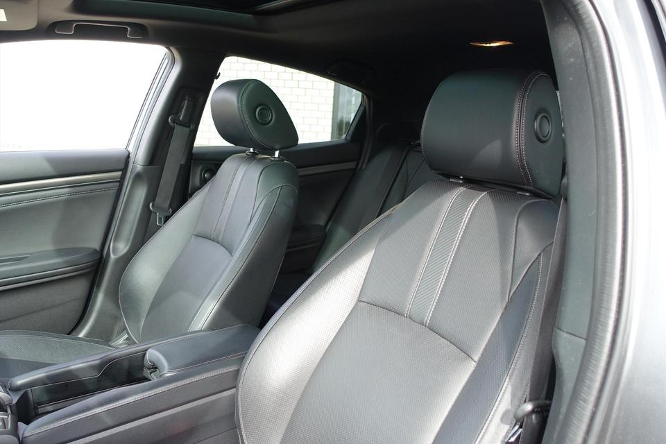 Zoals u mag verwachten van deze Honda Civic is hij uitgerust met een reeks aan actieve veiligheidssystemen. De actuele snelheidslimiet, een inhaalverbod en andere verkeersborden; de verkeersborddetectie ondersteunt u tijdens elke rit. Actieve dodehoekdetectie waarschuwt als een ander voertuig zich in uw dode hoek bevindt. Dit verkleint de kans op een aanrijding. Het risico van een kop-staartbotsing wordt aanzienlijk verminderd door de forward collision warning. De veiligheid van deze auto wordt verder verhoogd door hill start assist, rem-assistent en bandenspanningcontrolesysteem.